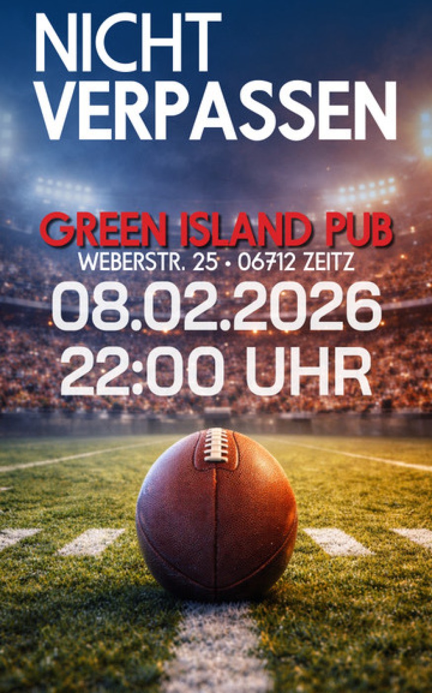 Super Bowl live in Zeitz: Watchparty im Green Island Pub am 8. Februar ab 22 Uhr