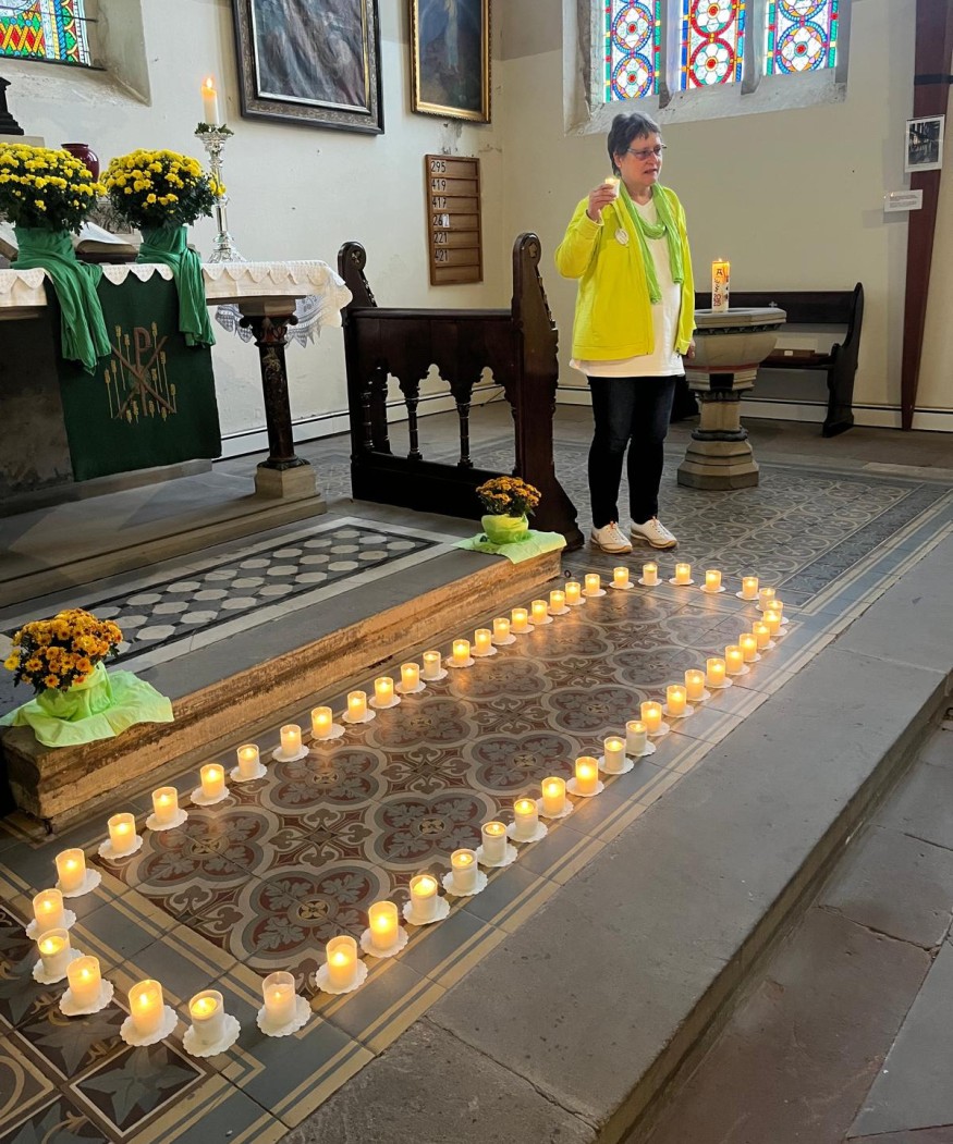 Der Brustkrebsmonat Oktober wird in Weißenfels traditionell mit der Aktion „Lucia – Ein Licht für die Seele“ eingeläutet. So erstrahlten in der Laurentiuskirche am 1. Oktober 2025 insgesamt 51 Kerzen. Sie erinnern an die Menschen, die täglich in Deutschland an Brustkrebs sterben. Betroffene, Angehörige und Interessierte nahmen an der Veranstaltung teil. Zu ihnen gehörte auch die Gleichstellungsbeauftragte der Stadt Weißenfels Katja Henze. Grußworte richteten die Vorsitzende der Frauenselbsthilfe Krebs Katrin Maasch, die Leiterin des Brustzentrums Dr. Kerstin Winkler, Dezernentin Dr. Ariane Körner und Landtagsabgeordnete Elke Simon-Kuch an die Gäste.