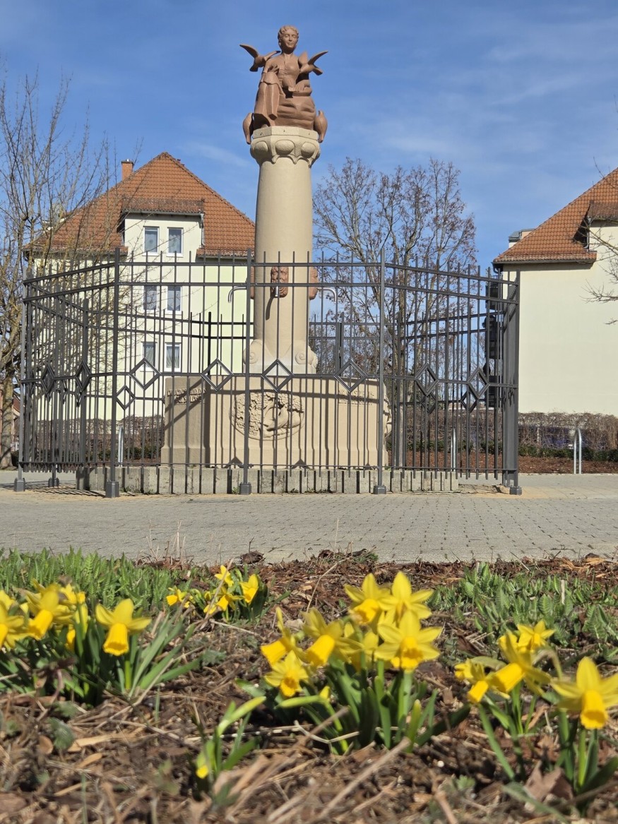 Der Märchenbrunnen an der Merseburger Straße wurde am 10. März 2026 eingezäunt. „Ich habe es für notwendig angesehen, ein klares Zeichen zu setzen und den restaurierten historischen Brunnen, der ein wichtiges Stück Stadtgeschichte ist, vor Vandalismus zu schützen. Die finanziellen Mittel wurden im Haushalt 2025/2026 eingeplant und durch den Stadtrat beschlossen“, sagte Oberbürgermeister Martin Papke.
