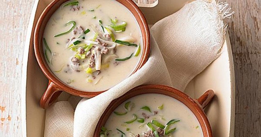 Käse-Lauch-Suppe mit Hackfleisch
