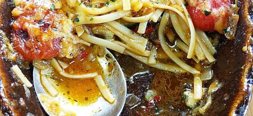 Linguine zugeben und nach Packungsangabe al dente kochen. Die Linguine abseihen, im Sieb