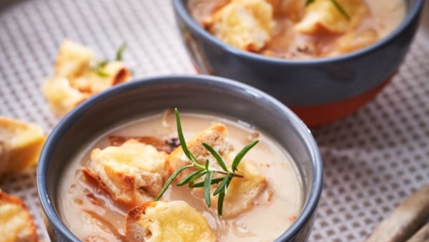 Eine deftige Zwiebelsuppe wärmt im Winter besonders gut und schmeckt dank der Zwiebeln immer