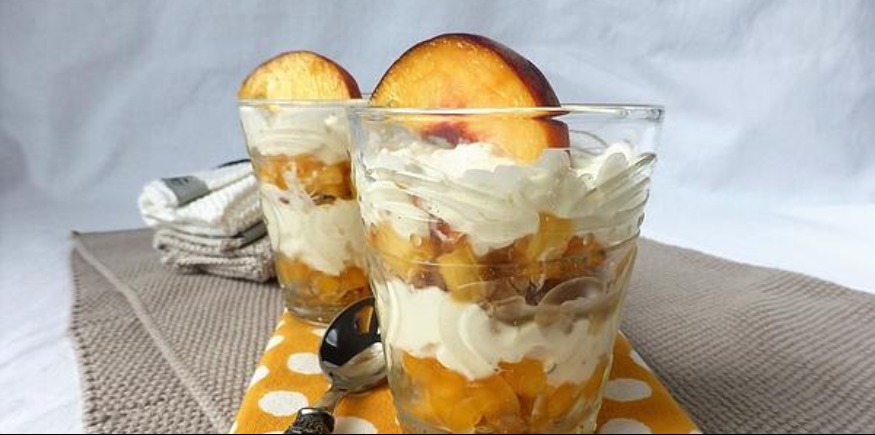 No Bake Cheesecake-Dessert mit Pfirsichen aus dem Glas