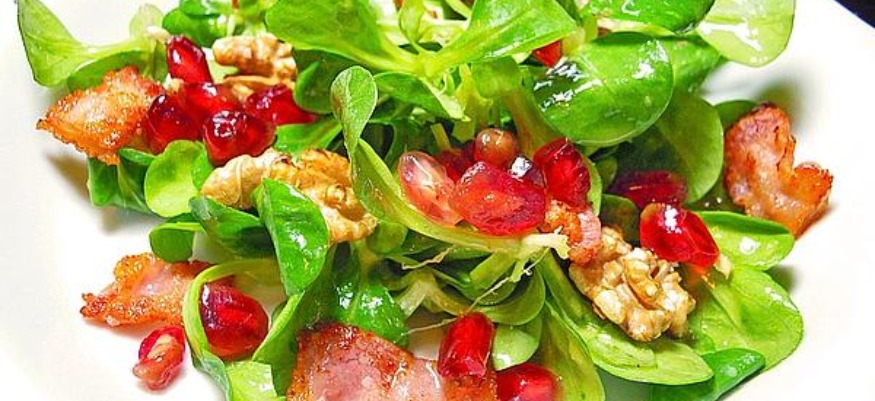 Weihnachtlicher Feldsalat mit Granatapfelkernen